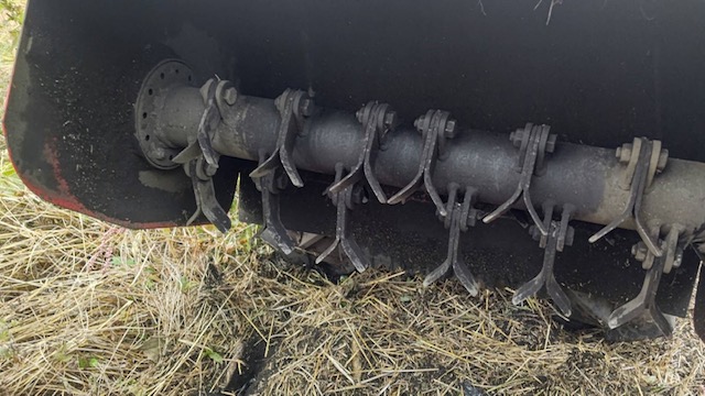 えらいポーズをつけての一枚。ハンマーナイフも最近切れ味悪く、ナイフの交換作業を中村君に頼んだ。