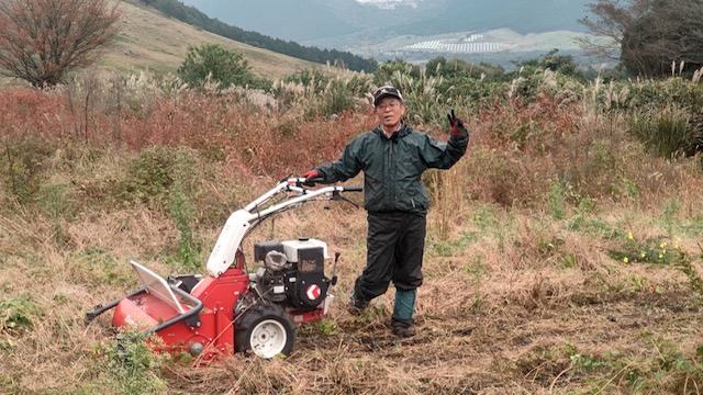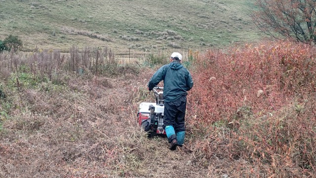 私が草刈りしている間、中村君は芋掘り作業。ハンマーナイフの力はすごい。Ⅰ時間半くらいで終了。
