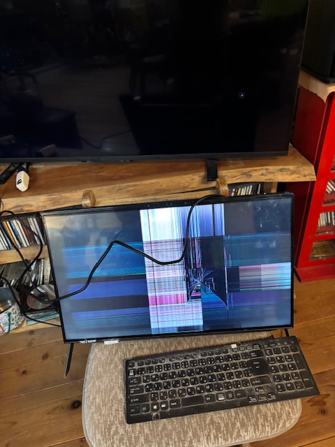 倒れたモニター一体型のパソコンを元に戻すと、アララ~!!