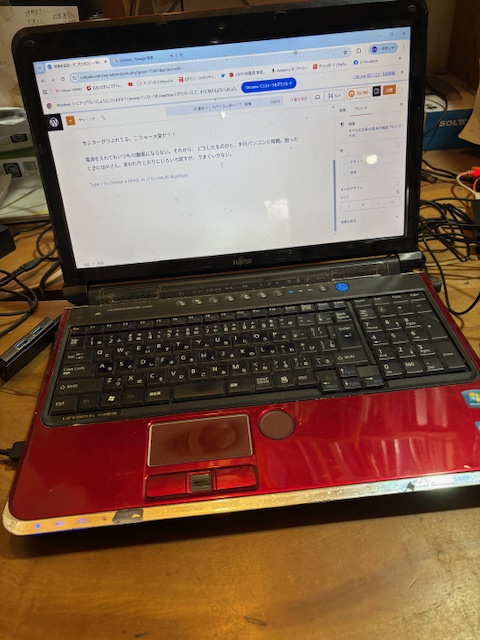 電源を入れてもいつもの画面にならない。それから、どうしたものかと、半日パソコンと格闘。困ったときにはAIさん。言われたとおりにいろいろ試すが、うまくいかない。