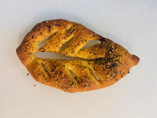 さらに、本日ひょこっと生まれた新作。といっても大きさだけが新作。カンパーニュ生地を使ったワイン(ビール)に合うアイテム。ミニフーガス。