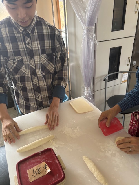 ミニフランスでフランス成形の練習を。毎回参加のヒロ君は、なかなかの腕前。