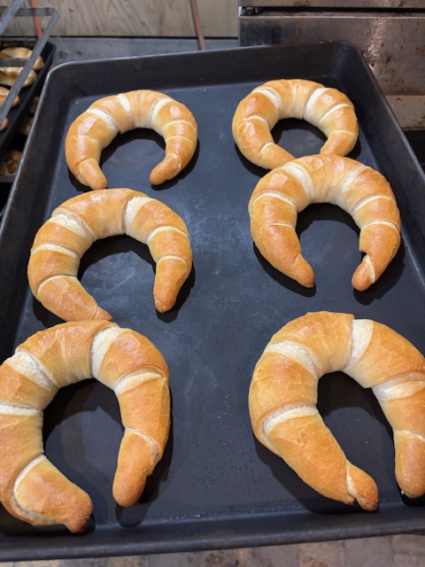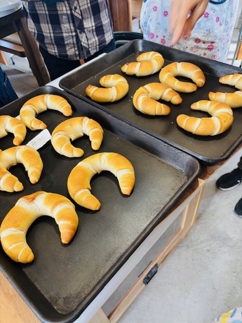 クレセントは生地を巻いて形を作るのがむずかしい!しかし初めての成形でしたが、なかなか上手でしたよ。