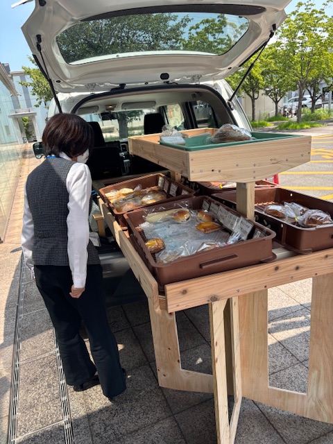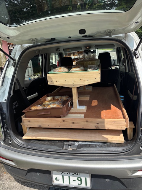 ほぼ売れた状態で華やかさはないですが、素晴らしい売り台です。普通自動車がこんな風に変身したことにOBSの職員さんたちもびっくり!