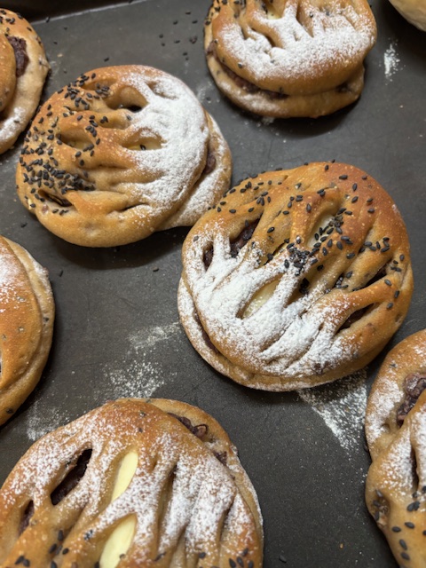 オニパン畑でとれた安納芋を使って自家製スイートポテトを作りました。それとクリームチーズの取り合わせで焼きました。